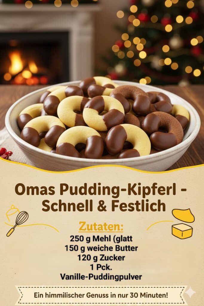 Vanillekipferl in 15 Minuten fertig Zutaten250 g Mehl210 g Butter100 g Mandel(n), gemahlen80 g Zucker2 Pck. Vanillezucker1 Pck. Puderzucker, zum Wenden2 Pck. Vanillezucker, zum WendenZubereitung weiterlesen auf der nächsten Seite För fullständiga tillagningssteg, gå till nästa sida eller klicka på Ö