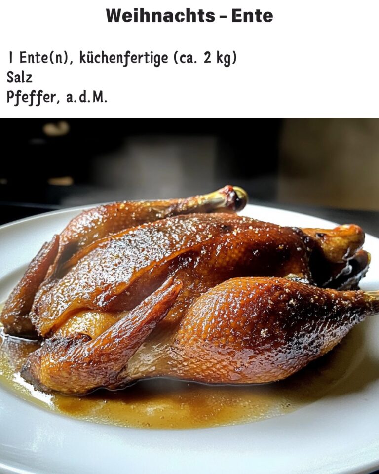 🎄🦆 Weihnachts – Ente 🦆🎄 👩🏼🍳Zutaten: 1 Ente(n), küchenfertige (ca. 2 kg) Salz Pfeffer, a.d.M. ½ TL Kümmel, gemahlen 3 Karotte(n) 2 m.-große Zwiebel(n), mittelgroß 1 EL Honig 1 EL Senf (Dijon-Senf) 1 EL Crème fraîche 3 EL Orangenlikör *************** 👩🏼🍳Zubereitung: