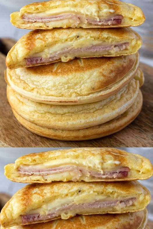 Rezept für herzhafte Pfannkuchen mit Schinken und Käse