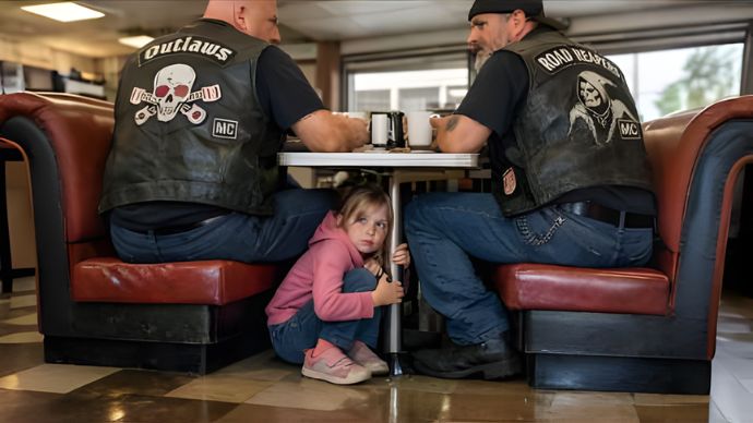 Kleines Mädchen versteckte sich unter dem Tisch eines Hells Angels, um ihrem Stiefvater zu entkommen – was dann geschah, ist schockierend.
