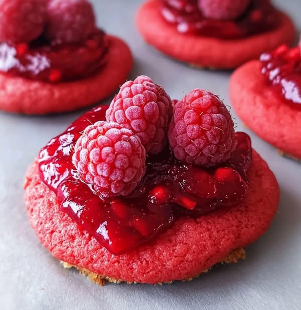 Kekse Himbeer & Karamell – Die perfekte Allianz aus Crunch und Fondant 🍪🍓 Zutaten (7-8 Kekse) Für den Keksteig: 190 g Butter 120 g Butter 280 g Mehl T55 1 œuf 1 Tasse Hefekaffee 1 Prise Salzblume Rote Lebensmittelfarbe (optional) Frische Himbeeren Für das Himbeer-Confit: Weitere Informationen auf der nächsten Seite